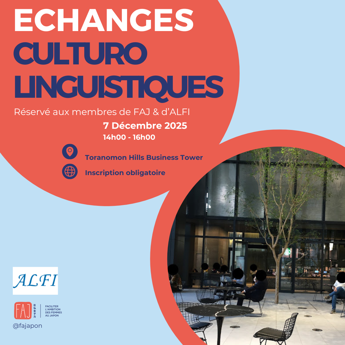 1 Chome-17-1 Toranomon, Minato City, Tokyo 105-6490 1 Chome-17-1 Toranomon, Minato City, TokyoChez FAJ, nos membres francophones éprouvent des difficultés à trouver des lieux pour pratiquer le japonais et à comprendre les subtilités de la culture japonaise. De leur côté, chez ALFI, […]