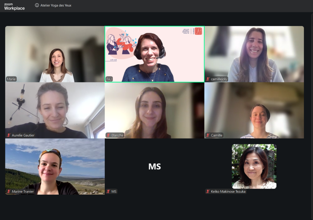 Le 3 Avril, Marie Gouttière nous a accompagnées pour mieux comprendre les challenges quotidiens auxquels font face nos yeux et comment en prendre soin. Elle nous a expliqué comment nos yeux influencent la totalité de notre corps: suivant notre vue et ce que nous regardons (écrans, téléphone…) ainsi que le temps passé, notre posture varie, entraînant des conséquences sur l’ensemble du système. Des exercices à la fois simples et complets pour faire du bien à ses yeux et retarder les problèmes de vue. Les participantes ont été surprises de constater à quel point certains exercices étaient difficiles lorsque l’on perd l’habitude de regarder au loin, sur les côtes, etc. Un véritable encouragement à regarder le monde sous un nouveau jour et à faire attention à tout ce qui nous entoure, pour plus de bien-être !